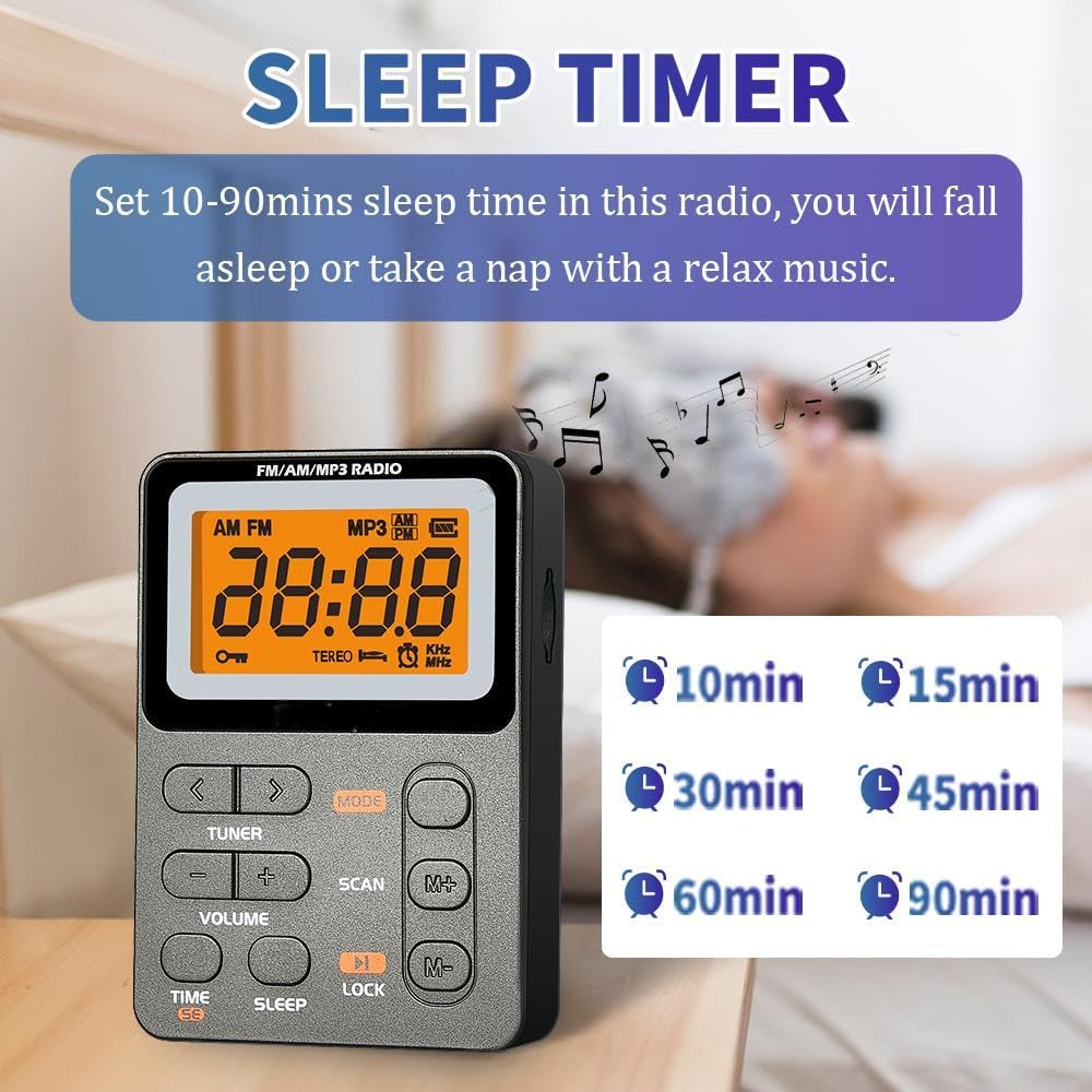 【Excellent Reception Pocket Radio】The personal am fm radio (FM:87.5-108MHz; AM:520-1710KHz) with premium DSP chip and earphones wire as antenna, it has best sensitive reception for more stations, you won’t miss any local stations such as NPR,Talk shows,Sports, Weather…. 50 AM/50 FM stations can be preset in this radio. The radio plays with stereo earphones, you can enjoy your favorite radio programs without disturbing or interrupting others!