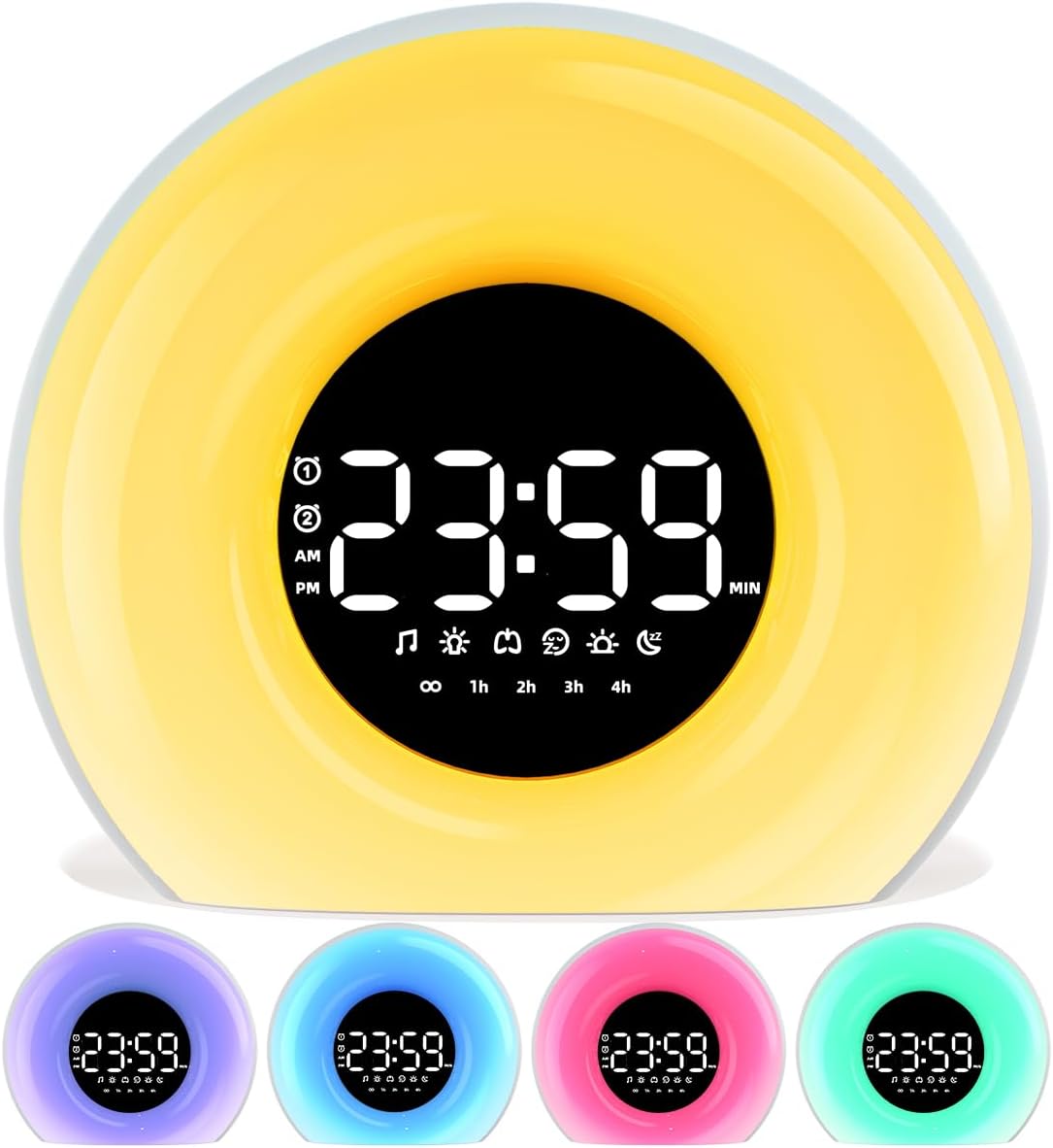 Wake Up Light Sunrise Alarm Clock for Bedroom Sunrise Sunset Simulation 23 Natural Sounds 13 Colors Light Dual Alarms and Snooze Function Sleep Aid for Heavy Sleepers Kids Adults (White)